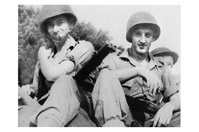 Ada seorang pendeta tentara di sana pada waktu itu yang menulis Pengalaman Prajurit dengan nama samaran Job Sytzen, yang dikompilasi ke dalam trilogi Soldaat/Ravijn Landgenoten. Di sampulnya ada foto ini, ayah saya di sebelah kiri truk tentara. Saya pikir itu gambar yang kuat, bukan hanya karena komposisinya tetapi juga karena Anda dapat melihat bahwa dia tidak sendirian dalam kesengsaraannya. Dia memiliki rekan, yang saling mendukung, dengan beberapa di antaranya dia tetap berhubungan seumur hidup.