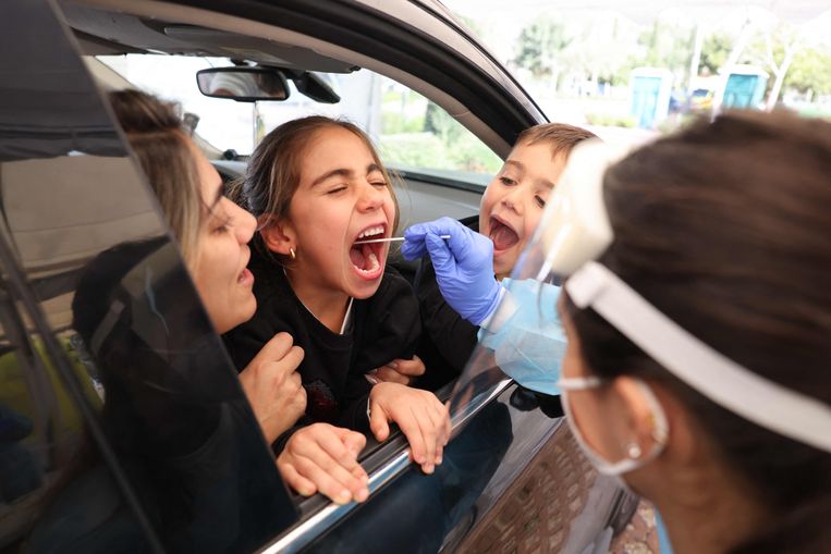 Pada 11 Januari 2022, seorang bayi dites corona di Yerusalem.Lapangan Menahem Kahana / AFP