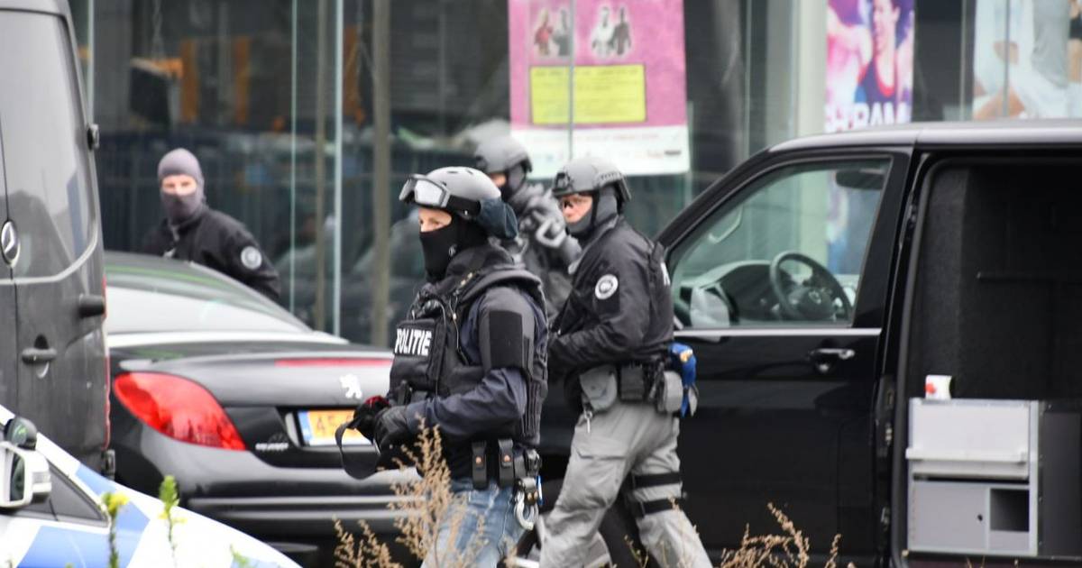 De ter plaatse aanwezige politieagenten waren gewapend en voorzien van kogelvrije vesten. Een drone vloog over het gebouw.