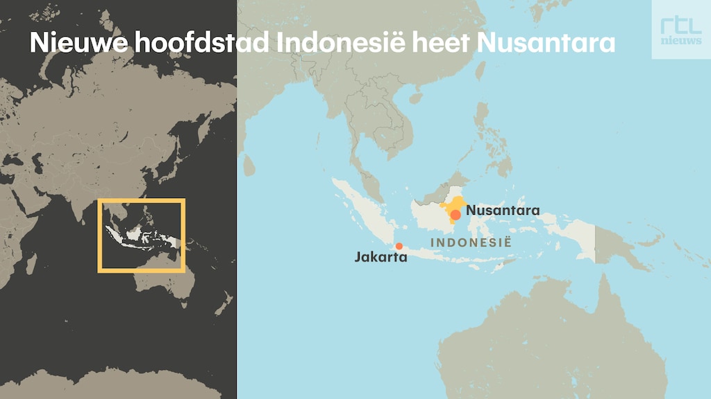 Di Pulau Kalimantan bagian Indonesia dikenal dengan nama Kalimantan. Sebuah kota baru akan dibangun di pantai timur pulau antara kota Balikpapan dan Samarinda. Nama baru Diterbitkan kemarin: Nusantara, artinya kepulauan (gugusan pulau).