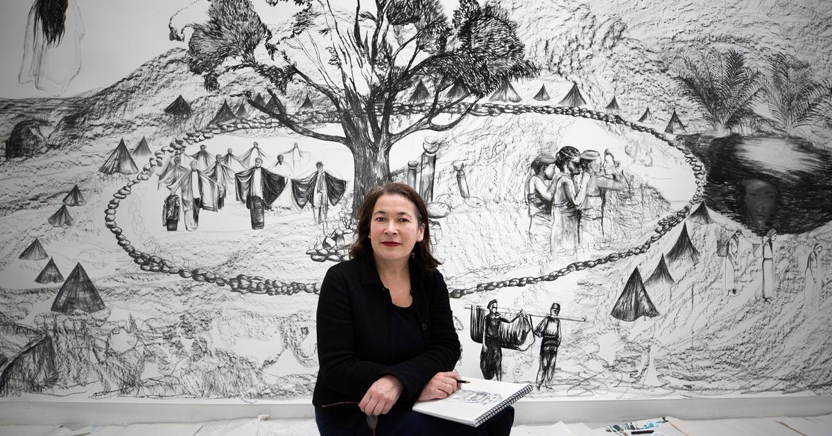 Danielle Lemire, 55, akan bekerja sepanjang Februari pada gambar yang jauh lebih besar daripada yang bisa dia buat di studionya, di tempat lain di kompleks itu. “Gadis yang saya gambar adalah Ria Raghu,” katanya. Pada tahun 1930, pendeta Belanda Simon Buis membuat a film dengan dia sebagai pemeran utama. Ayahnya memaksanya untuk menikah dengan pria yang tidak dia inginkan, dia dianiaya, melarikan diri, dan akhirnya meninggal bersama saudara perempuan Kristennya – “selamat”, seperti yang mereka katakan. Cerita yang sangat keras.”