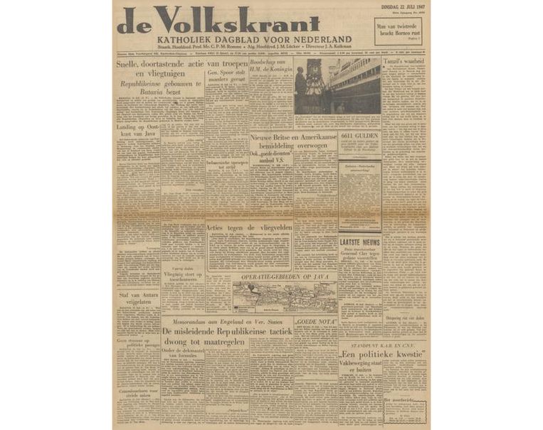 Tidak, ini bukan perang yang kita perjuangkan di Indonesia. Dan tentu saja bukan perang kolonial. Ini adalah isi dari semua pesan di de Volkskrant, dan sebagian besar surat kabar lainnya, tentang “aksi polisi” (yang pertama) di Indonesia – yang dimulai pada malam 20-21 Juli 1947 dengan gerakan ofensif oleh pasukan Belanda “di balik tirai kertas tangan”, menyarankan orang Indonesia untuk tidak Terapkan taktik bumi hangus Jika Puas dengan keberhasilan Belanda pertama, mereka pasti tidak muncul. de Volkskrant Dia menyarankan agar tidak menggunakan “jargon militer” seperti “kemenangan” atau “pengabaian”, dan bahkan berpikir meragukan bahwa retorika radio di mana Perdana Menteri Lewis Pell (KVP) mengumumkan bahwa pekerjaan polisi telah selesai dengan Wilhelmus. Ungkapan patriotisme ini hanya menimbulkan kesalahpahaman tentang niat baik Belanda di Indonesia (oleh karena itu, “Hindia Belanda” tidak lagi disebutkan).