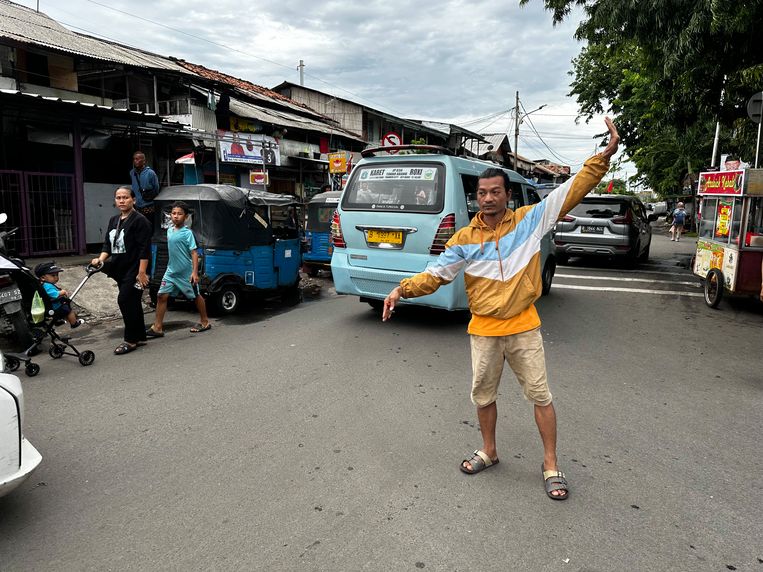 Dia anggota ribuan pengatur lalu lintas ilegal di Jakarta. Mereka terletak di persimpangan lalu lintas dan belokan U di jalan-jalan utama, dengan jalur-jalur yang dipisahkan oleh blok beton bermil-mil. Jika ada celah pada pembatas beton, semua orang akan menerobosnya untuk sampai ke seberang jalan. Hal serupa juga terjadi di persimpangan jalan-jalan besar melalui Jakarta. Berdiri di mana-mana Peluang tersedia untuk mengarahkan lalu lintas.